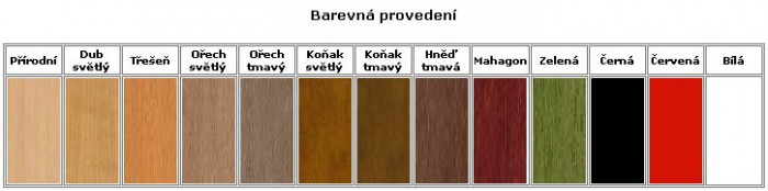 Výrobky jsou vyrobeny z vyzrálé a vysušené břízy. Výrobky označené – Bez povrchové úpravy – jsou hladce obroušené v surovém stavu a výrobky označené – S povrchovou úpravou – jsou mořeny a lakovány v barvách viz. vzorník barev.